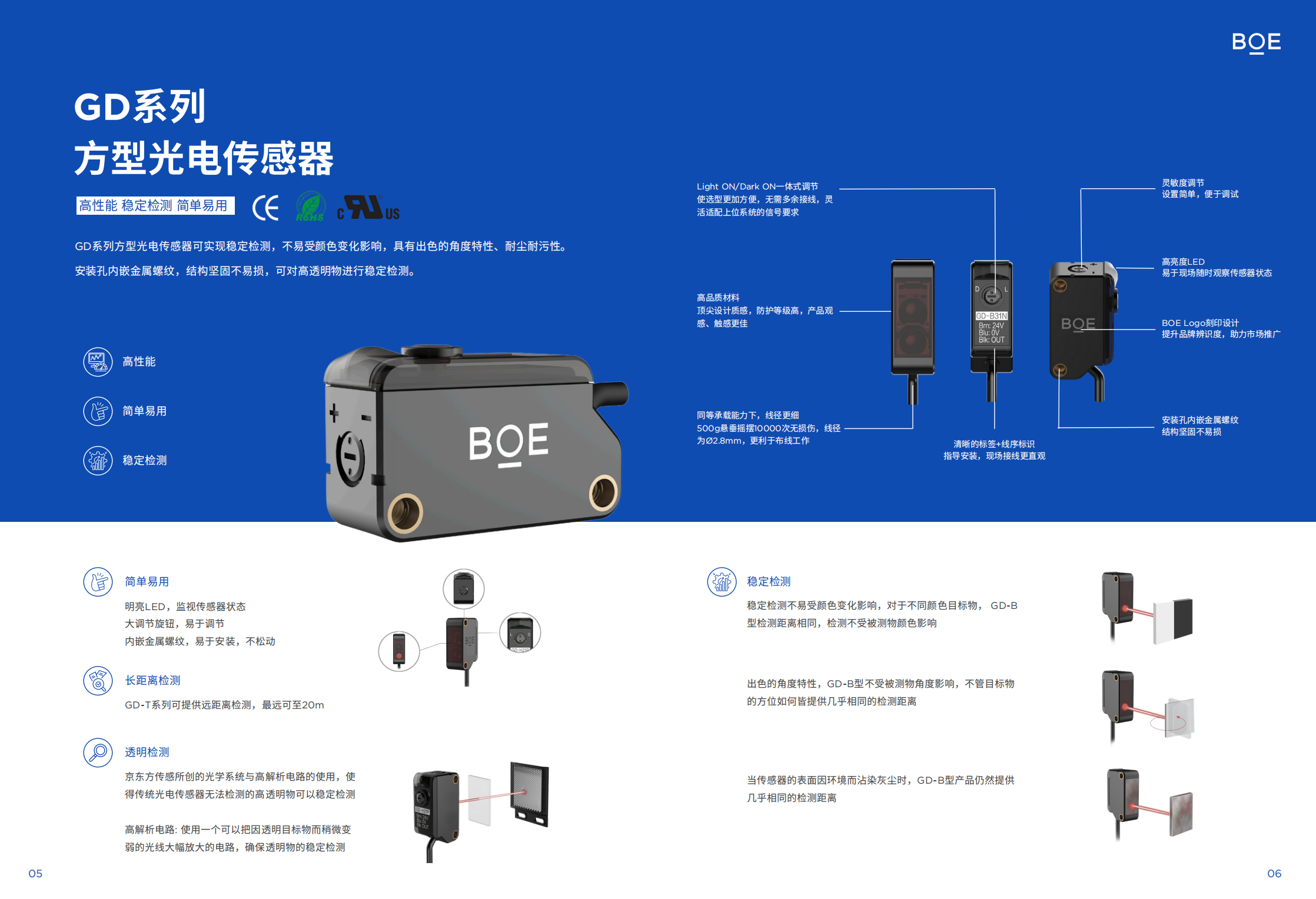 GD系列方型光电传感器可实现稳定检测,,,,不易受颜色变化影响,,,具有出色的角度特性、、、、耐尘耐污性。。。。安装孔内嵌金属螺纹,,结构坚固不易损,,,可对高透明物进行稳定检测。。