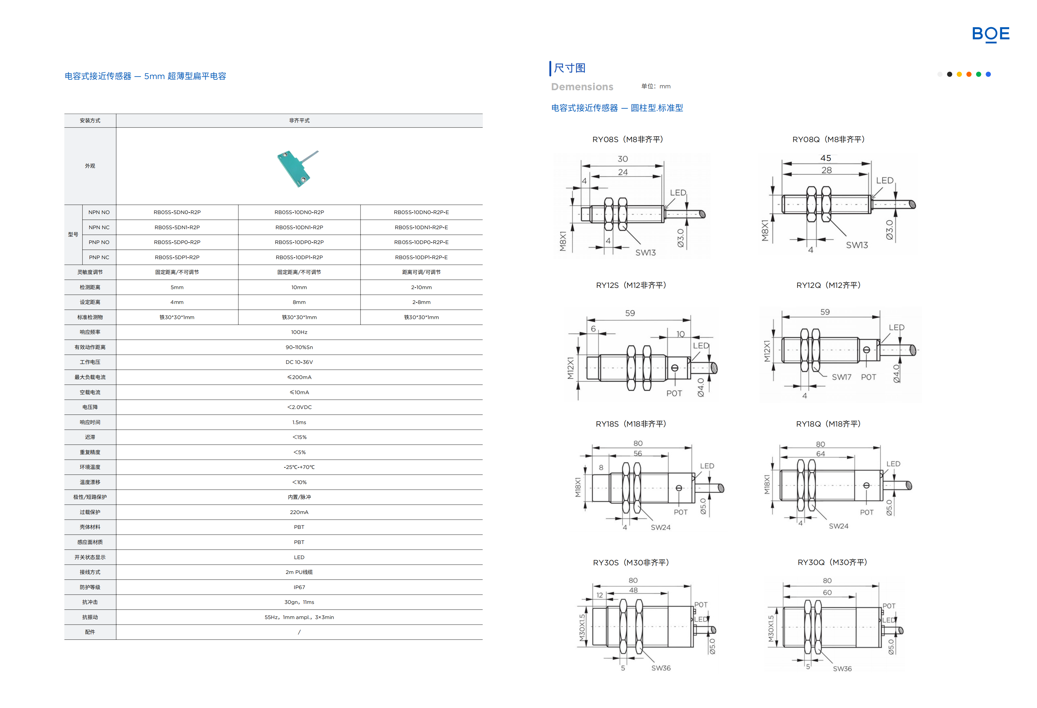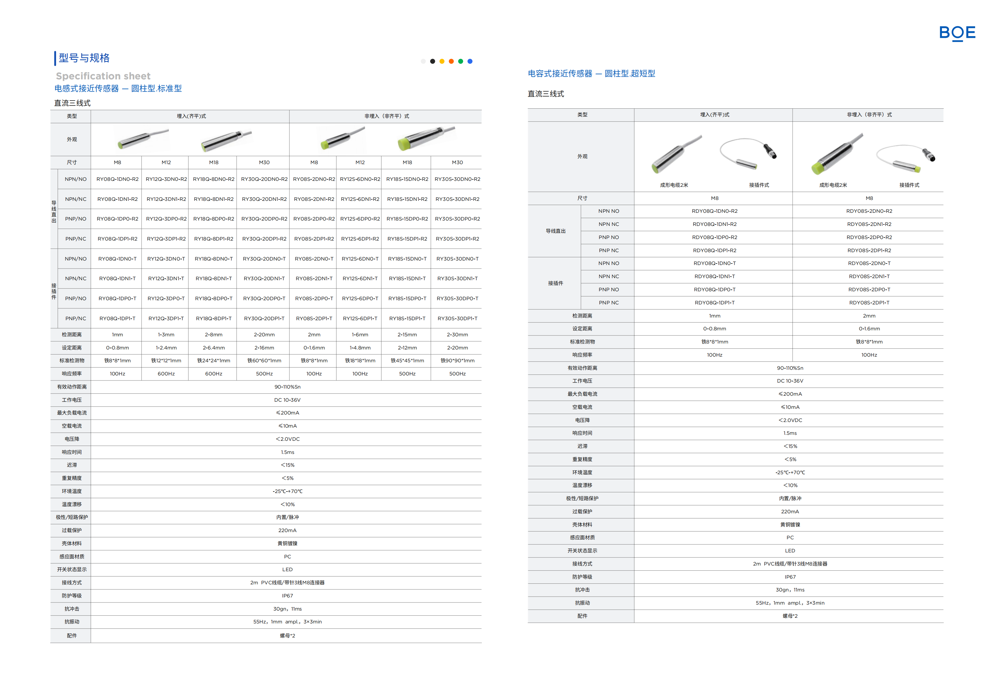 圆柱丰富的产品种类圆型、、、方型、、、扁平型多种结构可适配不同的安装空间及检测环境。。产品简单易用信号输出稳定可靠。。。具有温漂控制低、、重复精度高抗干扰能力强等特点。。