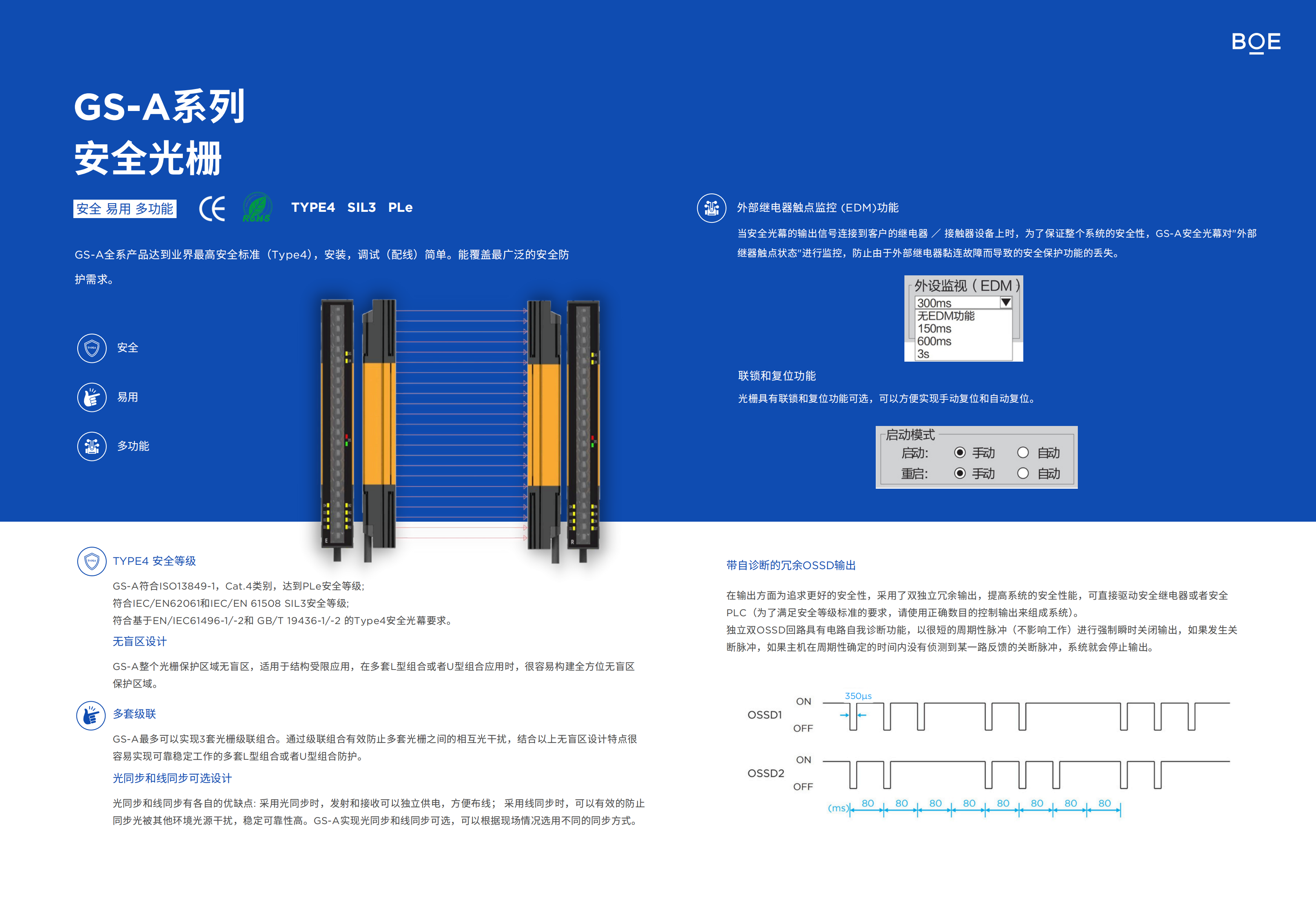 GS-A全系产品达到业界最高安全标准(Type4)安装,,,调试(配线)简单。。。能覆盖广泛的安全防护需求。。。