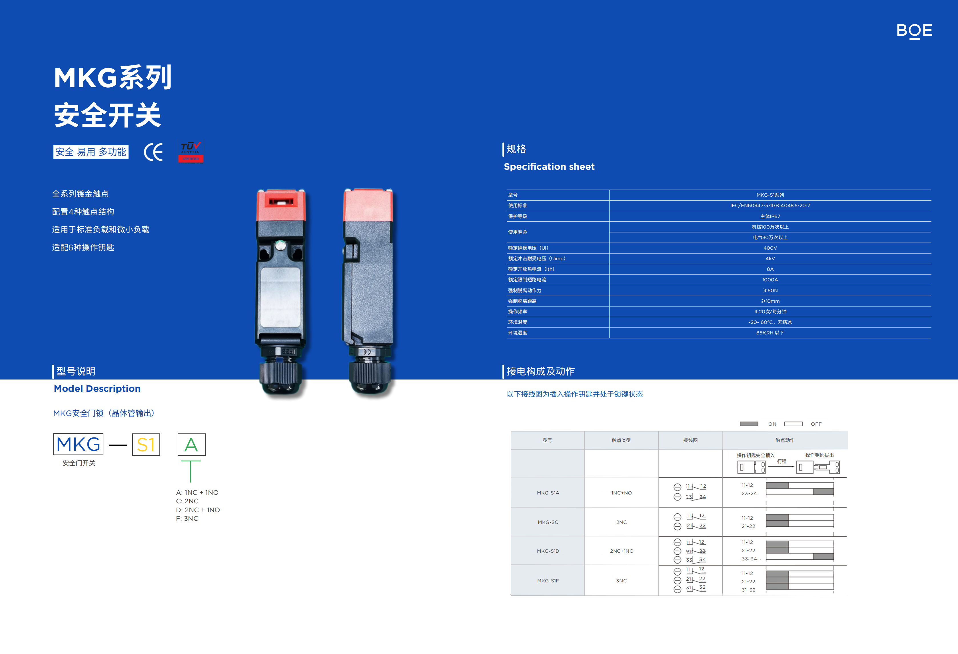 MKG安全开关全系列镀金触点;配置4种触点结构,,,,适用于标准负载和微小负载;适配6种操作钥匙。。。。