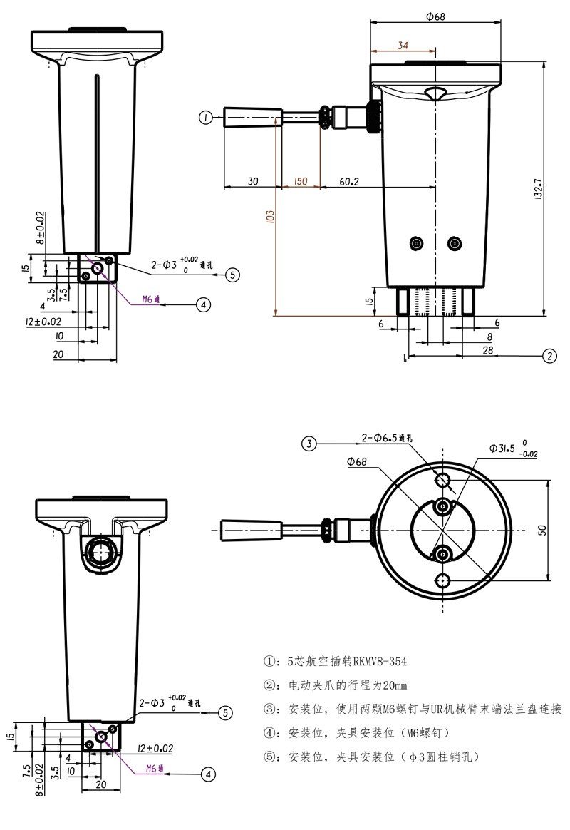 3. 六轴机械臂专属20mm行程电动气爪