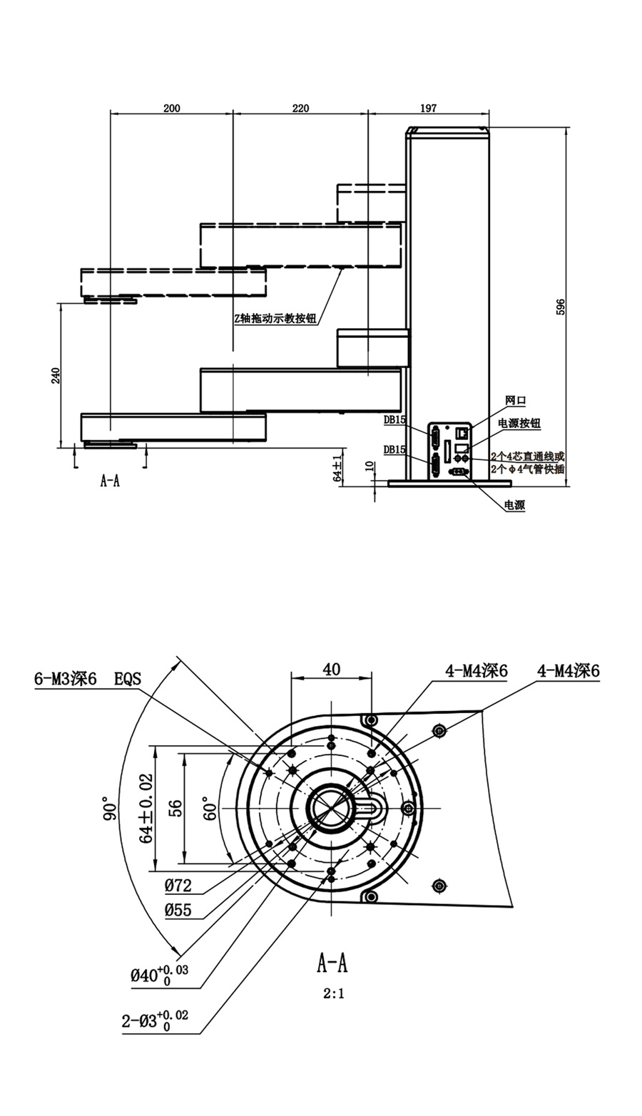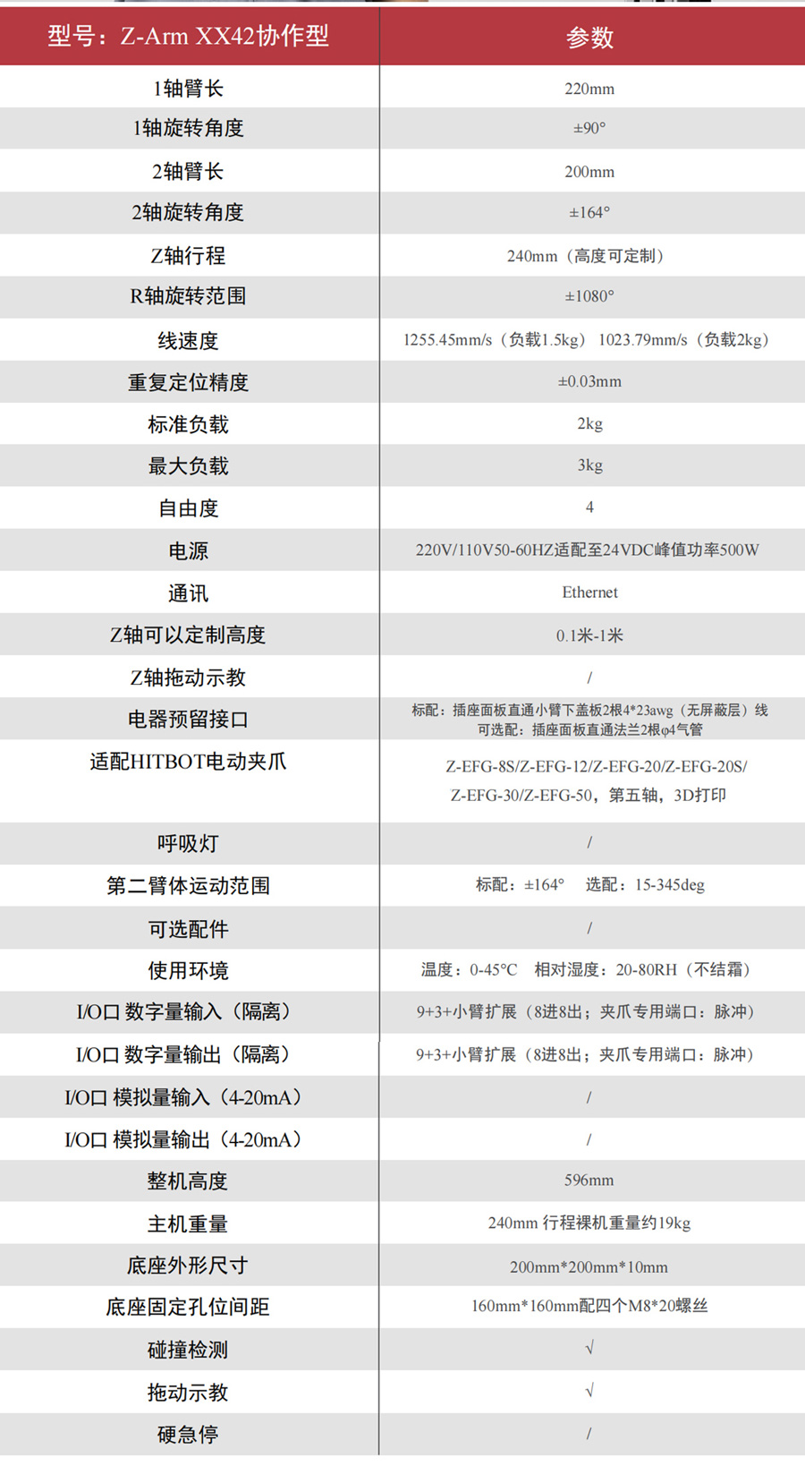 3. 大臂展:J1轴160mm、、J2轴160mm